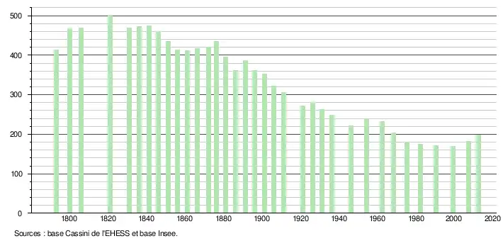 L'évolution du nombre d'habitants est connue à travers les recensements de la population effectués dans la commune depuis 1793. À partir du , les populations légales des communes sont publiées annuellement dans le cadre d'un recensement qui repose désormais sur une collecte d'information annuelle, concernant successivement tous les territoires communaux au cours d'une période de cinq ans. Pour les communes de moins de 10 000 habitants, une enquête de recensement portant sur toute la population est réalisée tous les cinq ans, les populations légales des années intermédiaires étant quant à elles estimées par interpolation ou extrapolation[10]. Pour la commune, le premier recensement exhaustif entrant dans le cadre du nouveau dispositif a été réalisé en 2007[11],[Note 1].