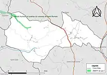 L’inventaire des zones naturelles d'intérêt écologique, faunistique et floristique (ZNIEFF) a pour objectif de réaliser une couverture des zones les plus intéressantes sur le plan écologique, essentiellement dans la perspective d’améliorer la connaissance du patrimoine naturel national et de fournir aux différents décideurs un outil d’aide à la prise en compte de l’environnement dans l’aménagement du territoire. Une ZNIEFF de type 1[Note 1] est recensée sur la commune[12] : les « Habitats humides et prairies du ruisseau de Saint-Romain » (33 ha), couvrant 2 communes du département[13].