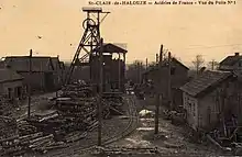 En 1884 a lieu la première découverte de gisement de fer à Saint-Clair-de-Halouze. La région est riche en fer jusque Mortain, dans la Manche. À proximité se trouve la mine de La Ferrière-aux-Étangs et plus loin Soumont-Saint-Quentin, Potigny, etc. Jusqu'en 1979, une importante exploitation de fer a eu lieu sur la commune, sous la direction de la Compagnie des forges de Châtillon-Commentry et Neuves-Maisons[17], employant à son maximum (dans les années 1950) plus de 500 mineurs et employés venus de toute l'Europe et même au-delà, sur près de 1 473 hectares. L'exploitation ne résistera pas à la crise de la sidérurgie et surtout à la concurrence du minerai de fer étranger, principalement mauritanien, plus riche en fer et bénéficiant de coûts de transport moindre. L'activité dans la région cessera en 1989 à la suite de la décision de la SMN (Société métallurgique de Normandie), client unique des mines, d'utiliser d'autres types de minerais.