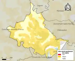 Le retrait-gonflement des sols argileux est susceptible d'engendrer des dommages importants aux bâtiments en cas d’alternance de périodes de sécheresse et de pluie. 66,9 % de la superficie communale est en aléa moyen ou fort (52,8 % au niveau départemental et 48,5 % au niveau national). Sur les 1 162 bâtiments dénombrés sur la commune en 2019, 889 sont en aléa moyen ou fort, soit 77 %, à comparer aux 70 % au niveau départemental et 54 % au niveau national. Une cartographie de l'exposition du territoire national au retrait gonflement des sols argileux est disponible sur le site du BRGM[21],[Carte 1].