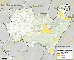 Le retrait-gonflement des sols argileux est susceptible d'engendrer des dommages importants aux bâtiments en cas d’alternance de périodes de sécheresse et de pluie. 6 % de la superficie communale est en aléa moyen ou fort (15,8 % au niveau départemental et 48,5 % au niveau national). Sur les 188 bâtiments dénombrés sur la commune en 2019, 7 sont en aléa moyen ou fort, soit 4 %, à comparer aux 14 % au niveau départemental et 54 % au niveau national. Une cartographie de l'exposition du territoire national au retrait gonflement des sols argileux est disponible sur le site du BRGM[20],[Carte 2].