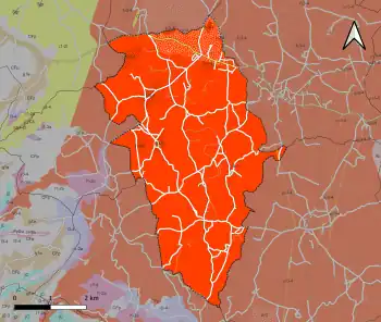La superficie cadastrale de la commune publiée par l'Insee, qui sert de référence dans toutes les statistiques, est de 21,37 km2[6],[12],[Note 2]. La superficie géographique, issue de la BD Topo, composante du Référentiel à grande échelle produit par l'IGN, est quant à elle de 22,21 km2[4].