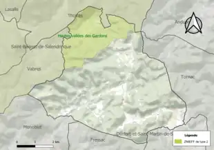 Une ZNIEFF de type 2[Note 1] est recensée sur la commune[7] : les « Hautes vallées des Gardons » (73 898 ha), couvrant 48 communes dont 27 dans le Gard et 21 dans la Lozère[8].