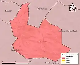 Le retrait-gonflement des sols argileux est susceptible d'engendrer des dommages importants aux bâtiments en cas d’alternance de périodes de sécheresse et de pluie. La totalité de la commune est en aléa moyen ou fort (88,8 % au niveau départemental et 48,5 % au niveau national). Sur les 35 bâtiments dénombrés sur la commune en 2019, 35 sont en aléa moyen ou fort, soit 100 %, à comparer aux 98 % au niveau départemental et 54 % au niveau national. Une cartographie de l'exposition du territoire national au retrait gonflement des sols argileux est disponible sur le site du BRGM[25],[Carte 3].