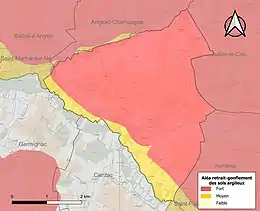 Le retrait-gonflement des sols argileux est susceptible d'engendrer des dommages importants aux bâtiments en cas d’alternance de périodes de sécheresse et de pluie. 99,9 % de la superficie communale est en aléa moyen ou fort (67,4 % au niveau départemental et 48,5 % au niveau national). Sur les 212 bâtiments dénombrés sur la commune en 2019, 211 sont en aléa moyen ou fort, soit 100 %, à comparer aux 81 % au niveau départemental et 54 % au niveau national. Une cartographie de l'exposition du territoire national au retrait gonflement des sols argileux est disponible sur le site du BRGM[31],[Carte 3].