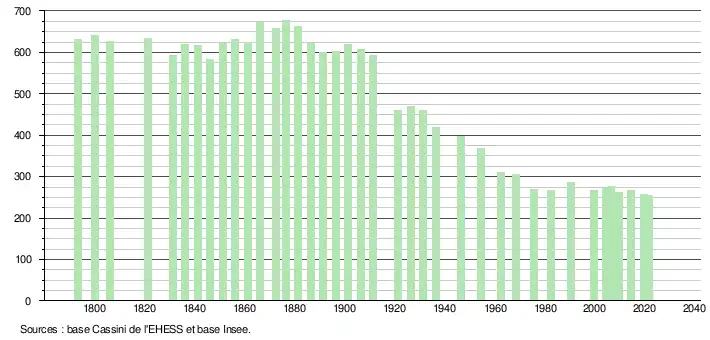 - Population municipale légale en vigueur au 1er janvier 2024, millésimée 2021, définie dans les limites territoriales en vigueur au 1er janvier 2023, date de référence statistique : 1er janvier 2021.