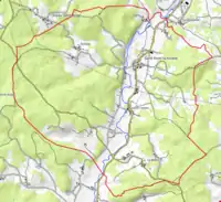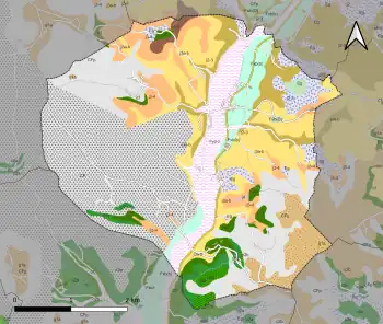 L'occupation des sols de la commune, telle qu'elle ressort de la base de données européenne d’occupation biophysique des sols Corine Land Cover (CLC), est marquée par l'importance des forêts et milieux semi-naturels (59,1 % en 2018), une proportion identique à celle de 1990 (58,6 %). La répartition détaillée en 2018 est la suivante : forêts (57,9 %), zones agricoles hétérogènes (29 %), prairies (9,7 %), zones urbanisées (2,1 %), milieux à végétation arbustive et/ou herbacée (1,2 %)[32]. L'évolution de l’occupation des sols de la commune et de ses infrastructures peut être observée sur les différentes représentations cartographiques du territoire : la carte de Cassini (XVIIIe siècle), la carte d'état-major (1820-1866) et les cartes ou photos aériennes de l'IGN pour la période actuelle (1950 à aujourd'hui)[Carte 3].