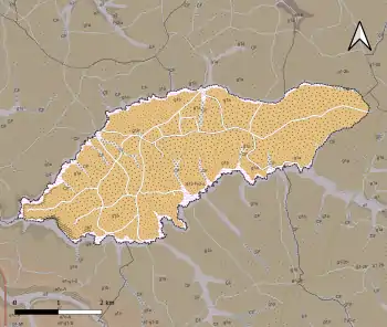 La superficie cadastrale de la commune publiée par l'Insee, qui sert de référence dans toutes les statistiques, est de 14,95 km2[5],[11],[Note 2]. La superficie géographique, issue de la BD Topo, composante du Référentiel à grande échelle produit par l'IGN, est quant à elle de 15,03 km2[3].