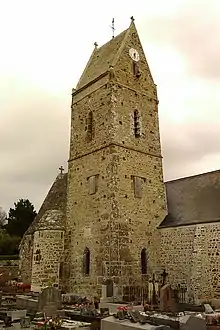 L'église paroissiale Saint-Georges des XIe, XIVe – XVIIe siècles, avec sa tour fortifiée datée peut-être de la seconde moitié du XIXe[Note 6] est remarquable à la fois par l'originalité de sa construction, la richesse de ses fresques et de ses statues. Elle est située au centre du village, au bout d'une vieille ruelle bordée de maisons en pierre. Son patronage, comme sa voisine de Saint-Jean-de-la-Rivière, fut donné par le baron de la Haye-du-Puits, Turstin Haldup (fl. au XIe siècle), à l'abbaye de Lessay[39]. L'église placée sous le vocable de saint Georges laisse supposer de l'existence d'un édifice antérieur, peut être dès le VIIIe siècle[29].