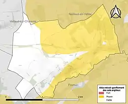 Le retrait-gonflement des sols argileux est susceptible d'engendrer des dommages importants aux bâtiments en cas d’alternance de périodes de sécheresse et de pluie. 56,6 % de la superficie communale est en aléa moyen ou fort (67,4 % au niveau départemental et 48,5 % au niveau national). Sur les 43 bâtiments dénombrés sur la commune en 2019, 29 sont en aléa moyen ou fort, soit 67 %, à comparer aux 81 % au niveau départemental et 54 % au niveau national. Une cartographie de l'exposition du territoire national au retrait gonflement des sols argileux est disponible sur le site du BRGM[19],[Carte 3].