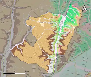 L'occupation des sols de la commune, telle qu'elle ressort de la base de données européenne d’occupation biophysique des sols Corine Land Cover (CLC), est marquée par l'importance des forêts et milieux semi-naturels (73,4 % en 2018), une proportion identique à celle de 1990 (73,4 %). La répartition détaillée en 2018 est la suivante : forêts (70,9 %), zones agricoles hétérogènes (23,2 %), zones urbanisées (3,2 %), milieux à végétation arbustive et/ou herbacée (2,5 %), prairies (0,2 %)[34]. L'évolution de l’occupation des sols de la commune et de ses infrastructures peut être observée sur les différentes représentations cartographiques du territoire : la carte de Cassini (XVIIIe siècle), la carte d'état-major (1820-1866) et les cartes ou photos aériennes de l'IGN pour la période actuelle (1950 à aujourd'hui)[Carte 3].