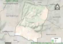 L'occupation des sols de la commune, telle qu'elle ressort de la base de données européenne d’occupation biophysique des sols Corine Land Cover (CLC), est marquée par l'importance des forêts et milieux semi-naturels (49,5 % en 2018), une proportion sensiblement équivalente à celle de 1990 (51,2 %). La répartition détaillée en 2018 est la suivante : forêts (49,5 %), cultures permanentes (34,3 %), zones agricoles hétérogènes (11,1 %), zones urbanisées (3,6 %), terres arables (1,6 %)[15]. L'évolution de l’occupation des sols de la commune et de ses infrastructures peut être observée sur les différentes représentations cartographiques du territoire : la carte de Cassini (XVIIIe siècle), la carte d'état-major (1820-1866) et les cartes ou photos aériennes de l'IGN pour la période actuelle (1950 à aujourd'hui)[Carte 1].