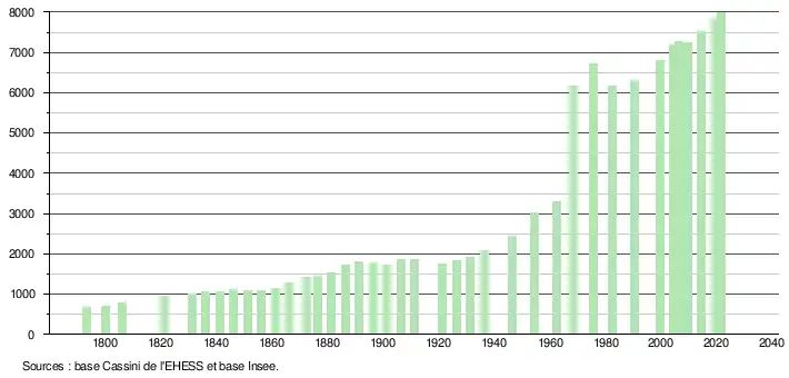 Pour la période 1971-2000, la température annuelle moyenne est de 12,7 °C, avec une amplitude thermique annuelle de 12,9 °C. Le cumul annuel moyen de précipitations est de 765 mm, avec 12,3 jours de précipitations en janvier et 6 jours en juillet[18]. Pour la période 1991-2020, la température moyenne annuelle observée sur la station météorologique de Météo-France la plus proche, sur la commune du Perrier à 14 km à vol d'oiseau[20], est de 12,8 °C et le cumul annuel moyen de précipitations est de 762,1 mm[21],[22]. Pour l'avenir, les paramètres climatiques de la commune estimés pour 2050 selon différents scénarios d'émission de gaz à effet de serre sont consultables sur un site dédié publié par Météo-France en novembre 2022[23].