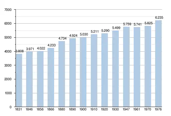 - Source : DGS - Remarque: 1831 jusqu'à 1981=recensement; depuis 1990=nombre d'habitants chaque 1er janvier[6]