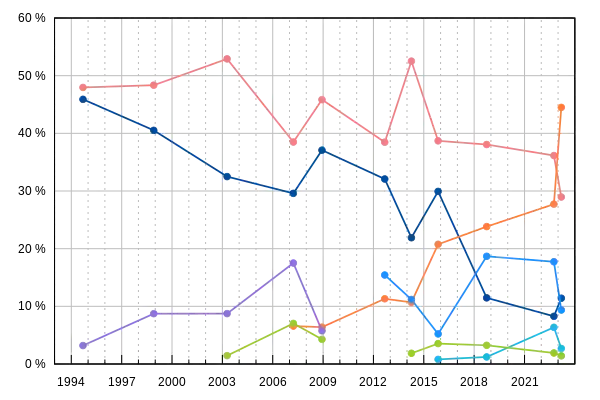 | Le taux de participation lors de l'élection était de 44,8 % et 405 bulletins ont été rejetés. | |||||
