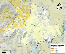 Le retrait-gonflement des sols argileux est susceptible d'engendrer des dommages importants aux bâtiments en cas d’alternance de périodes de sécheresse et de pluie. 11,3 % de la superficie communale est en aléa moyen ou fort (26,8 % au niveau départemental et 48,5 % au niveau national). Sur les 162 bâtiments dénombrés sur la commune en 2019, 15 sont en aléa moyen ou fort, soit 9 %, à comparer aux 36 % au niveau départemental et 54 % au niveau national. Une cartographie de l'exposition du territoire national au retrait gonflement des sols argileux est disponible sur le site du BRGM[16],[Carte 2].
