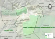 L’inventaire des zones naturelles d'intérêt écologique, faunistique et floristique (ZNIEFF) a pour objectif de réaliser une couverture des zones les plus intéressantes sur le plan écologique, essentiellement dans la perspective d’améliorer la connaissance du patrimoine naturel national et de fournir aux différents décideurs un outil d’aide à la prise en compte de l’environnement dans l’aménagement du territoire. Deux ZNIEFF de type 1[Note 2] sont recensées sur la commune[10] : la « montagne des Cagnasses » (558 ha), couvrant 3 communes du département[11], et la « plaine de Pompignan, Conqueyrac et Saint-Hippolyte-du-Fort » (5 432 ha), couvrant 3 communes du département[12] et trois ZNIEFF de type 2[Note 3],[10] :