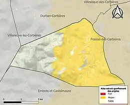 Le retrait-gonflement des sols argileux est susceptible d'engendrer des dommages importants aux bâtiments en cas d’alternance de périodes de sécheresse et de pluie. 67,8 % de la superficie communale est en aléa moyen ou fort (75,2 % au niveau départemental et 48,5 % au niveau national). Sur les 239 bâtiments dénombrés sur la commune en 2019, 238 sont en aléa moyen ou fort, soit 100 %, à comparer aux 94 % au niveau départemental et 54 % au niveau national. Une cartographie de l'exposition du territoire national au retrait gonflement des sols argileux est disponible sur le site du BRGM[25],[Carte 3].