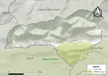 L'occupation des sols de la commune, telle qu'elle ressort de la base de données européenne d’occupation biophysique des sols Corine Land Cover (CLC), est marquée par l'importance des forêts et milieux semi-naturels (70 % en 2018), une proportion identique à celle de 1990 (70 %). La répartition détaillée en 2018 est la suivante : forêts (58 %), zones agricoles hétérogènes (18,9 %), milieux à végétation arbustive et/ou herbacée (12 %), prairies (11 %)[20]. L'évolution de l’occupation des sols de la commune et de ses infrastructures peut être observée sur les différentes représentations cartographiques du territoire : la carte de Cassini (XVIIIe siècle), la carte d'état-major (1820-1866) et les cartes ou photos aériennes de l'IGN pour la période actuelle (1950 à aujourd'hui)[Carte 2].