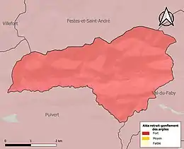 Le retrait-gonflement des sols argileux est susceptible d'engendrer des dommages importants aux bâtiments en cas d’alternance de périodes de sécheresse et de pluie. La totalité de la commune est en aléa moyen ou fort (75,2 % au niveau départemental et 48,5 % au niveau national). Sur les 87 bâtiments dénombrés sur la commune en 2019, 87 sont en aléa moyen ou fort, soit 100 %, à comparer aux 94 % au niveau départemental et 54 % au niveau national. Une cartographie de l'exposition du territoire national au retrait gonflement des sols argileux est disponible sur le site du BRGM[23],[Carte 3].