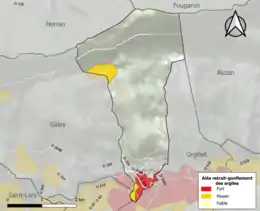 Les mouvements de terrains susceptibles de se produire sur la commune sont soit des chutes de blocs, soit des glissements de terrains, soit des effondrements liés à des cavités souterraines, soit des mouvements liés au retrait-gonflement des argiles. Près de 50 % de la superficie du département est concernée par l'aléa retrait-gonflement des argiles, dont la commune de Saint-Jean-du-Castillonnais[37]. L'inventaire national des cavités souterraines permet par ailleurs de localiser celles situées sur la commune[38].