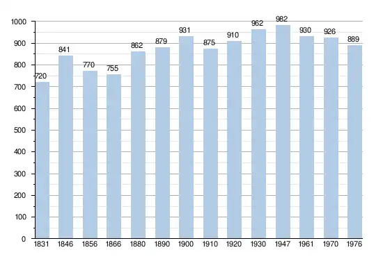 - Sources : INS, Rem. : 1831 jusqu'en 1970 = recensements, 1976 = nombre d'habitants au 31 décembre[2].