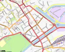 Les deux axes principaux qui le traversent sont la rue Saint-Jean et l'avenue du 6 juin.