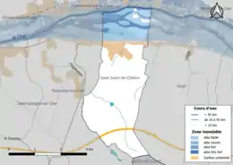 Le territoire communal de Saint-Julien-de-Chédon est vulnérable à différents aléas naturels : inondations (par débordement du Cher ou par ruissellement), climatiques (hiver exceptionnel ou canicule), mouvements de terrains ou sismique (sismicité faible). Il est également exposé à deux risques technologiques : le risque industriel et le transport de matières dangereuses[40],[41].