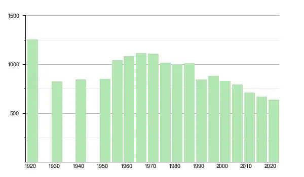 L'église catholique actuelle date de 1944 et est la troisième située sur le même site, les deux autres ayant brûlé.