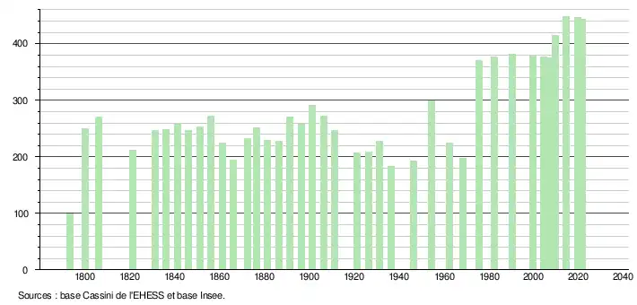 444 hab. (2021 en diminution de 1,55 % par rapport à 2015)