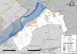 En Loir-et-Cher, les crues de la Loire représentent des volumes d'eau et des débits quatre à cinq fois supérieurs à ceux du Cher et du Loir : la superficie des zones et l'ampleur des dégâts peuvent être considérables. Les crues historiques sont celles de 1846 (6,60 m à l'échelle de Blois), 1856 (6,78 m), 1866 (6,70 m), 1907 (5,63 m) et 2003 (3,78 m). Le débit maximal historique est de 5 100 m3/s (crue de 1846) et caractérise une crue de retour centennal[51]. Le risque d'inondation est pris en compte dans l'aménagement du territoire de la commune par le biais du Plan de prévention du risque inondation (PPRI) de la Loire amont[52].