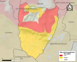 Le retrait-gonflement des sols argileux est susceptible d'engendrer des dommages importants aux bâtiments en cas d’alternance de périodes de sécheresse et de pluie. 88,9 % de la superficie communale est en aléa moyen ou fort (67,5 % au niveau départemental et 48,5 % au niveau national). Sur les 267 bâtiments dénombrés sur la commune en 2019, 265 sont en aléa moyen ou fort, soit 99 %, à comparer aux 90 % au niveau départemental et 54 % au niveau national. Une cartographie de l'exposition du territoire national au retrait gonflement des sols argileux est disponible sur le site du BRGM[21],[Carte 2].