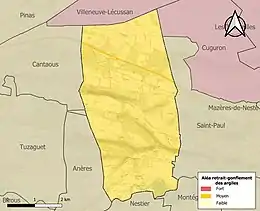 Le retrait-gonflement des sols argileux est susceptible d'engendrer des dommages importants aux bâtiments en cas d’alternance de périodes de sécheresse et de pluie. La totalité de la commune est en aléa moyen ou fort (44,5 % au niveau départemental et 48,5 % au niveau national). Sur les 499 bâtiments dénombrés sur la commune en 2019, 499 sont en aléa moyen ou fort, soit 100 %, à comparer aux 75 % au niveau départemental et 54 % au niveau national. Une cartographie de l'exposition du territoire national au retrait gonflement des sols argileux est disponible sur le site du BRGM[29],[Carte 3].