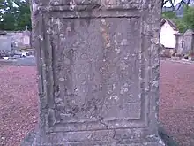 - À l'entrée du cimetière se trouve un pilier quadrangulaire portant des inscriptions latines. Il s'agit d'un cippe funéraire datant du IIe siècle. Plus massif qu'une stèle, il fait office de pierre tombale et d'autel. Des plantes occupent le creux aménagé dans la pierre pour recevoir les offrandes.
