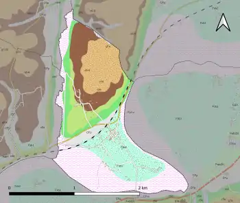 L'occupation des sols de la commune, telle qu'elle ressort de la base de données européenne d’occupation biophysique des sols Corine Land Cover (CLC), est marquée par l'importance des territoires agricoles (75 % en 2018), une proportion identique à celle de 1990 (75,1 %). La répartition détaillée en 2018 est la suivante : zones agricoles hétérogènes (48,7 %), forêts (24,9 %), terres arables (17,4 %), prairies (8,9 %)[38]. L'évolution de l’occupation des sols de la commune et de ses infrastructures peut être observée sur les différentes représentations cartographiques du territoire : la carte de Cassini (XVIIIe siècle), la carte d'état-major (1820-1866) et les cartes ou photos aériennes de l'IGN pour la période actuelle (1950 à aujourd'hui)[Carte 3].