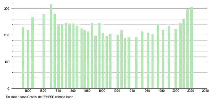 - Fiches Insee - Populations légales de la commune pour les années 2006, 2007, 2008, 2009, 2010, 2011, 2012, 2013, 2014, 2015, 2016, 2017, 2018, 2019, 2020 et 2021.