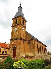 - Église Saint-Louis de 1767, bâtie sur le modèle d'« église-grange » traditionnellement employé en Lorraine dans les églises rurales depuis le 18e siècle, avec une tour-clocher ouvrant sur une nef à vaisseau unique.