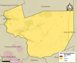La commune est vulnérable au risque de mouvements de terrains constitué principalement du retrait-gonflement des sols argileux[16]. Cet aléa est susceptible d'engendrer des dommages importants aux bâtiments en cas d’alternance de périodes de sécheresse et de pluie. La totalité de la commune est en aléa moyen ou fort (90 % au niveau départemental et 48,5 % au niveau national). Sur les 176 bâtiments dénombrés sur la commune en 2019, 176 sont en aléa moyen ou fort, soit 100 %, à comparer aux 83 % au niveau départemental et 54 % au niveau national. Une cartographie de l'exposition du territoire national au retrait gonflement des sols argileux est disponible sur le site du BRGM[17],[Carte 2].