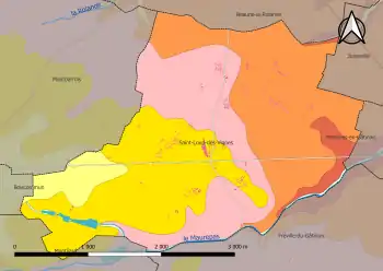 Par ailleurs, le sol du territoire communal peut faire l'objet de mouvements de terrain liés à la sècheresse. Le phénomène de retrait-gonflement des argiles est la conséquence d'un changement d'humidité des sols argileux. Les argiles sont capables de fixer l'eau disponible mais aussi de la perdre en se rétractant en cas de sècheresse[31]. Ce phénomène peut provoquer des dégâts très importants sur les constructions (fissures, déformations des ouvertures) pouvant rendre inhabitables certains locaux. Celui-ci a particulièrement affecté le Loiret après la canicule de l'été 2003. Une partie centre-ouest du territoire de la commune, comprenant le bourg, est exposée à un aléa « fort » face à ce risque, selon l'échelle définie par le Bureau de recherches géologiques et minières (BRGM)[32].