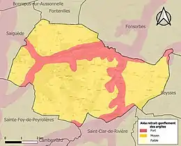 Le retrait-gonflement des sols argileux est susceptible d'engendrer des dommages importants aux bâtiments en cas d’alternance de périodes de sécheresse et de pluie. La totalité de la commune est en aléa moyen ou fort (88,8 % au niveau départemental et 48,5 % au niveau national). Sur les 3 057 bâtiments dénombrés sur la commune en 2019, 3 057 sont en aléa moyen ou fort, soit 100 %, à comparer aux 98 % au niveau départemental et 54 % au niveau national. Une cartographie de l'exposition du territoire national au retrait gonflement des sols argileux est disponible sur le site du BRGM[27],[Carte 3].