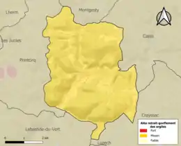 Le retrait-gonflement des sols argileux est susceptible d'engendrer des dommages importants aux bâtiments en cas d’alternance de périodes de sécheresse et de pluie. La totalité de la commune est en aléa moyen ou fort (67,7 % au niveau départemental et 48,5 % au niveau national). Sur les 149 bâtiments dénombrés sur la commune en 2019, 149 sont en aléa moyen ou fort, soit 100 %, à comparer aux 72 % au niveau départemental et 54 % au niveau national. Une cartographie de l'exposition du territoire national au retrait gonflement des sols argileux est disponible sur le site du BRGM[22],[Carte 2].