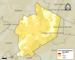 Le retrait-gonflement des sols argileux est susceptible d'engendrer des dommages importants aux bâtiments en cas d’alternance de périodes de sécheresse et de pluie. 77,9 % de la superficie communale est en aléa moyen ou fort (52,8 % au niveau départemental et 48,5 % au niveau national). Sur les 233 bâtiments dénombrés sur la commune en 2019, 177 sont en aléa moyen ou fort, soit 76 %, à comparer aux 70 % au niveau départemental et 54 % au niveau national. Une cartographie de l'exposition du territoire national au retrait gonflement des sols argileux est disponible sur le site du BRGM[19],[Carte 2].