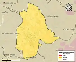 Le retrait-gonflement des sols argileux est susceptible d'engendrer des dommages importants aux bâtiments en cas d’alternance de périodes de sécheresse et de pluie. La totalité de la commune est en aléa moyen ou fort (75,2 % au niveau départemental et 48,5 % au niveau national). Sur les 848 bâtiments dénombrés sur la commune en 2019, 848 sont en aléa moyen ou fort, soit 100 %, à comparer aux 94 % au niveau départemental et 54 % au niveau national. Une cartographie de l'exposition du territoire national au retrait gonflement des sols argileux est disponible sur le site du BRGM[28],[Carte 3].