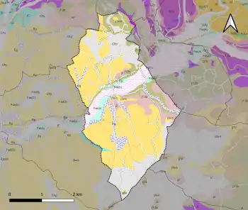 La superficie cadastrale de la commune publiée par l'Insee, qui sert de référence dans toutes les statistiques, est de 10,28 km2[6],[11],[Note 2]. La superficie géographique, issue de la BD Topo, composante du Référentiel à grande échelle produit par l'IGN, est quant à elle de 10,68 km2[4].