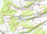L'occupation des sols de la commune, telle qu'elle ressort de la base de données européenne d’occupation biophysique des sols Corine Land Cover (CLC), est marquée par l'importance des territoires agricoles (55 % en 2018), une proportion identique à celle de 1990 (55 %). La répartition détaillée en 2018 est la suivante : forêts (40,2 %), prairies (26,4 %), terres arables (21,6 %), zones agricoles hétérogènes (7 %), zones urbanisées (4,8 %)[13]. L'évolution de l’occupation des sols de la commune et de ses infrastructures peut être observée sur les différentes représentations cartographiques du territoire : la carte de Cassini (XVIIIe siècle), la carte d'état-major (1820-1866) et les cartes ou photos aériennes de l'IGN pour la période actuelle (1950 à aujourd'hui)[Carte 1].