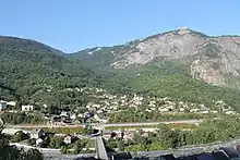 Vue du chef-lieu de la commune depuis le col du Télégraphe. | |||||