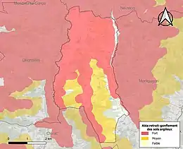 Le retrait-gonflement des sols argileux est susceptible d'engendrer des dommages importants aux bâtiments en cas d’alternance de périodes de sécheresse et de pluie. 92,3 % de la superficie communale est en aléa moyen ou fort (54,2 % au niveau départemental et 48,5 % au niveau national). Sur les 285 bâtiments dénombrés sur la commune en 2019, 256 sont en aléa moyen ou fort, soit 90 %, à comparer aux 57 % au niveau départemental et 54 % au niveau national. Une cartographie de l'exposition du territoire national au retrait gonflement des sols argileux est disponible sur le site du BRGM[16],[Carte 2].