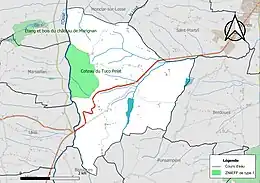 L’inventaire des zones naturelles d'intérêt écologique, faunistique et floristique (ZNIEFF) a pour objectif de réaliser une couverture des zones les plus intéressantes sur le plan écologique, essentiellement dans la perspective d’améliorer la connaissance du patrimoine naturel national et de fournir aux différents décideurs un outil d’aide à la prise en compte de l’environnement dans l’aménagement du territoire. Une ZNIEFF de type 1[Note 1] est recensée sur la commune[12] : le « coteau du Tuco Pelat » (141 ha), couvrant 2 communes du département[13].