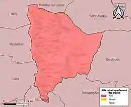 Le retrait-gonflement des sols argileux est susceptible d'engendrer des dommages importants aux bâtiments en cas d’alternance de périodes de sécheresse et de pluie. La totalité de la commune est en aléa moyen ou fort (94,5 % au niveau départemental et 48,5 % au niveau national). Sur les 62 bâtiments dénombrés sur la commune en 2019, 62 sont en aléa moyen ou fort, soit 100 %, à comparer aux 93 % au niveau départemental et 54 % au niveau national. Une cartographie de l'exposition du territoire national au retrait gonflement des sols argileux est disponible sur le site du BRGM[19],[Carte 3].