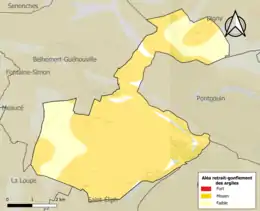 Le retrait-gonflement des sols argileux est susceptible d'engendrer des dommages importants aux bâtiments en cas d’alternance de périodes de sécheresse et de pluie. 76,5 % de la superficie communale est en aléa moyen ou fort (52,8 % au niveau départemental et 48,5 % au niveau national). Sur les 246 bâtiments dénombrés sur la commune en 2019, 184 sont en aléa moyen ou fort, soit 75 %, à comparer aux 70 % au niveau départemental et 54 % au niveau national. Une cartographie de l'exposition du territoire national au retrait gonflement des sols argileux est disponible sur le site du BRGM[16],[Carte 2].